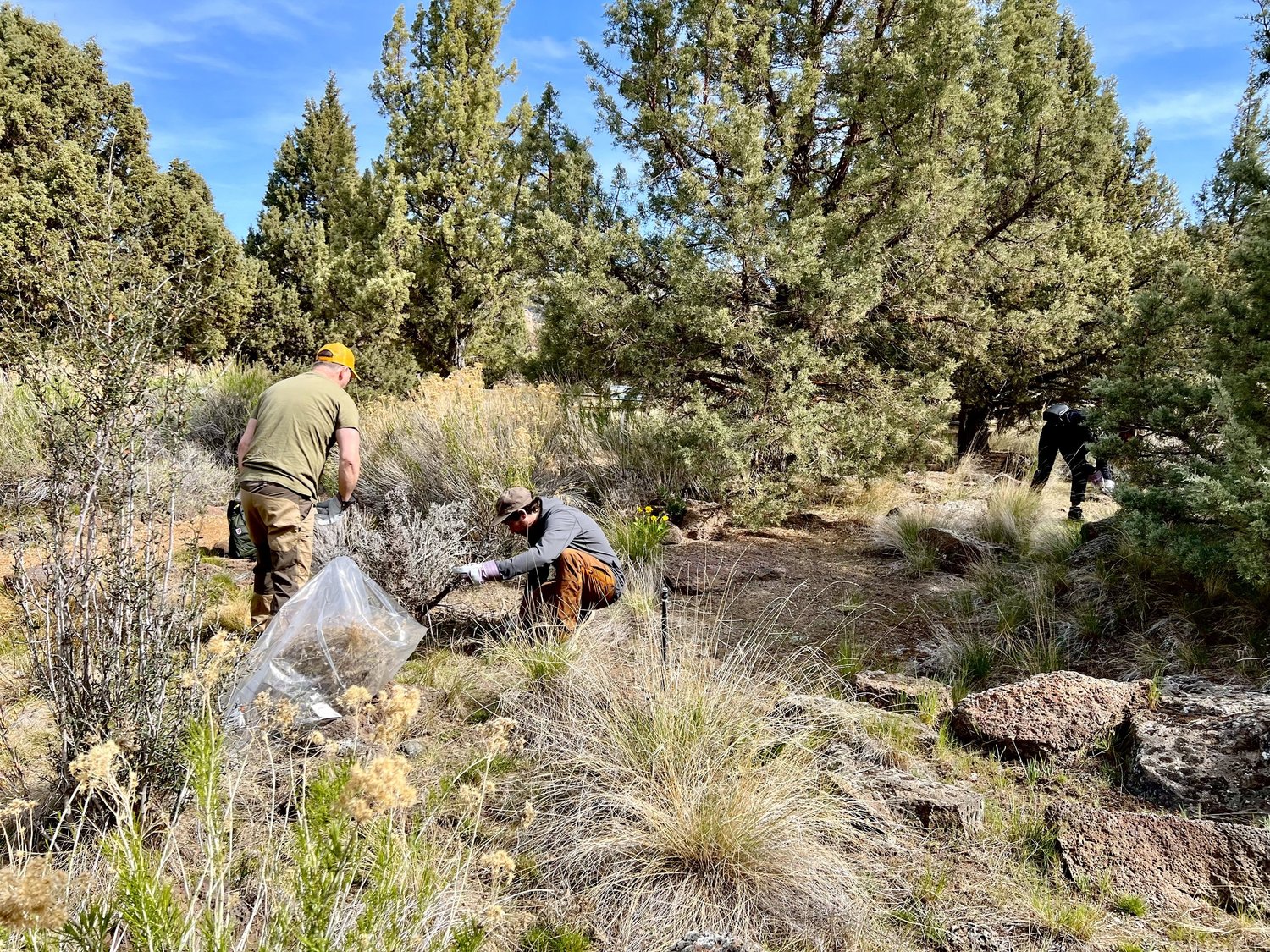 A Swedish jogger one day made it a mission to combine his fitness run while picking up trash, or “plogging.” The term has since expanded to hiking with picking up trash. As an outdoor clothing and equipment company “committed to making nature more accessible,” Fjällräven of Sweden, and its store in Bend and stores worldwide believe it is each of our responsibility to “Leave basecamp in better condition than we found it.” When Fjällräven wanted to bring a “plogging” crew to Smith Rock State Park as part of a larger Earth Day initiative in Central Oregon, Smith Rock rangers were happy to turn them on to the overgrown Native Plant Garden by the Welcome Center.