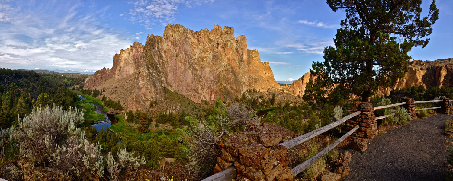 As you keep winding left you see Asterisk Pass, marked by a boulder resembling Woodstock from Snoopy comic strip fame. The Smith Rock Group with Phoenix Buttress, another popular climbing area, lies just beyond the horse ford. On summer days you may see them crossing with their riders when the river is lowest.